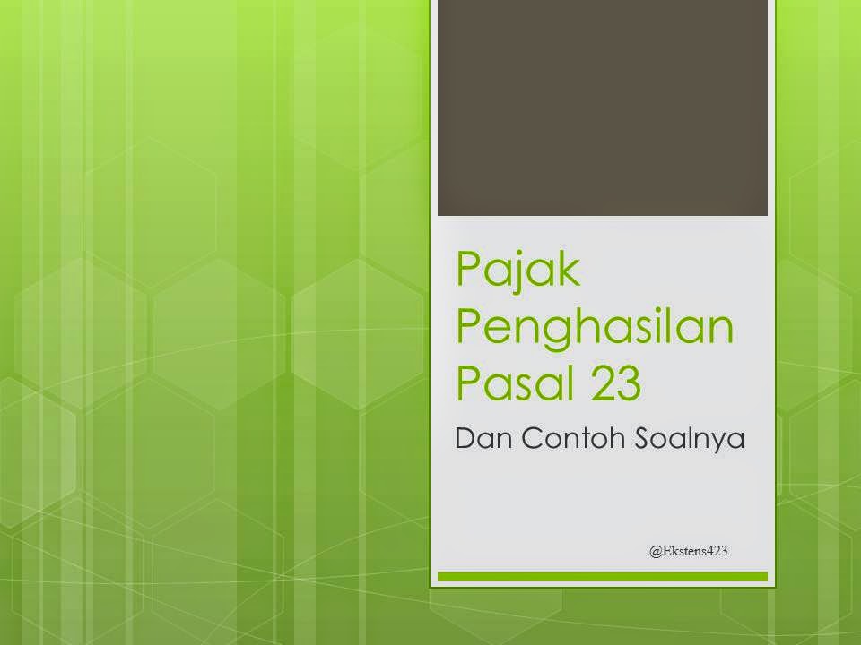 Pajak Penghasilan Pasal 23 merupakan Pajak Penghasilan yang dipotong atas penghasilan yang diterima atau diperoleh Wajib Pajak dalam negeri dan Bentuk Usaha Tetap yang berasal dari modal, penyerahan jasa, atau penyelenggaraan kegiatan selain yang telah dipotong Pajak Penghasilan Pasal 21, yang dibayarkan atau terutang oleh badan pemerintah atau subjek pajak dalam negeri, penyelenggara kegiatan, Bentuk Usaha Tetap atau perwakilan perusahaan luar negeri lainnya.